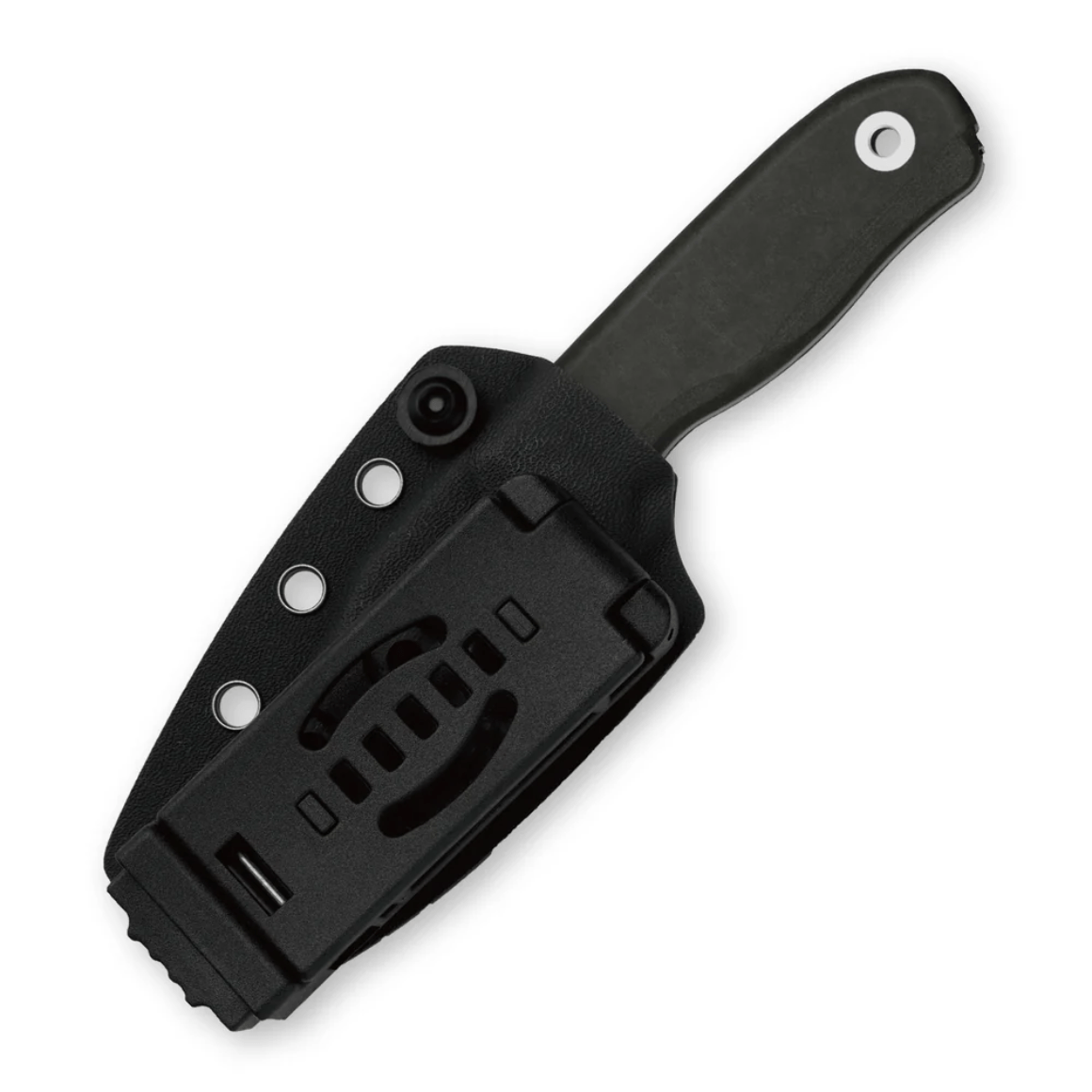 Komplektis on Kydexist tupp, mis toetab nii vertikaalset kui ka horisontaalset vööle kinnitamist, muutes selle praktiliseks valikuks igas olukorras.