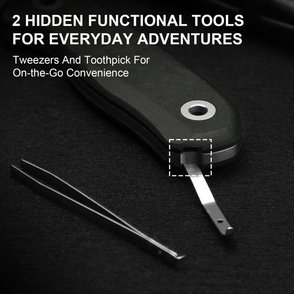 Käepide sisaldab peidetud pintsette ja hambaorki, lisades praktilist kasulikkust ülesannete jaoks nagu pinnu eemaldamine, toidu ettevalmistamine või muud väikesed tööd. Ideaalne igapäevaseks kasutamiseks, matkamiseks või telkimiseks, olles tõeline multitööriist sinu taskus.