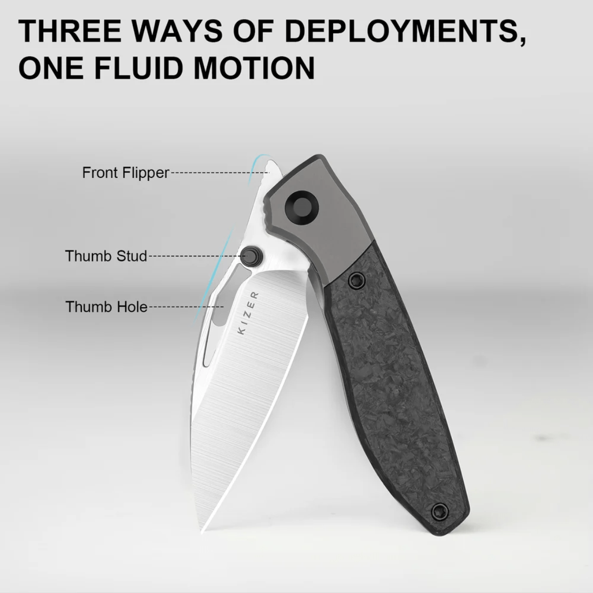 Tera saab avada kolmel viisil - pöidlanukkide, pöidlaava ja Front Flipperiga. Framelock, mis on valmistatud lennundusklassi titaansulamist ühe tükina, tagab erakordse struktuurse terviklikkuse ja lukustuse kindluse.
