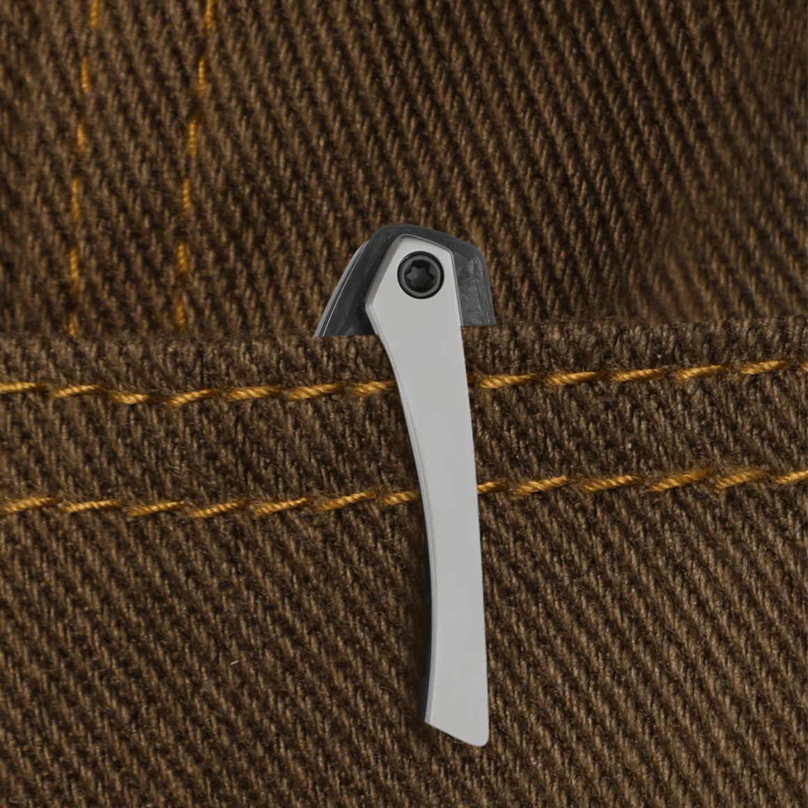 Tip-up titaanist taskuklamber parempoolseks kandmiseks.