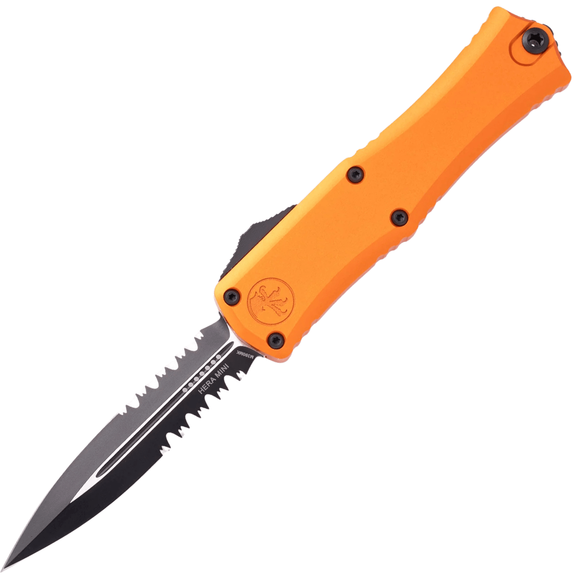 Microtech HERA II MINI D/E BLACK PART SERRATE ORANGE 1702M-2OR